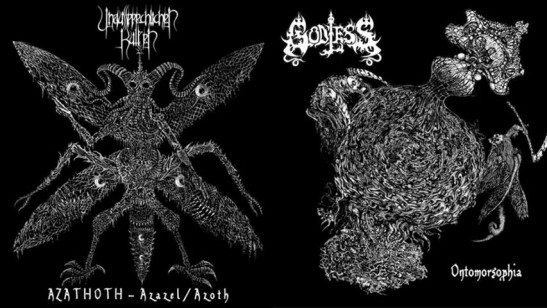 You can pick up this Unaussprechlichen Kulten/Godless split 7’ from Iron Bonehead Productions on July 15th. Do it.