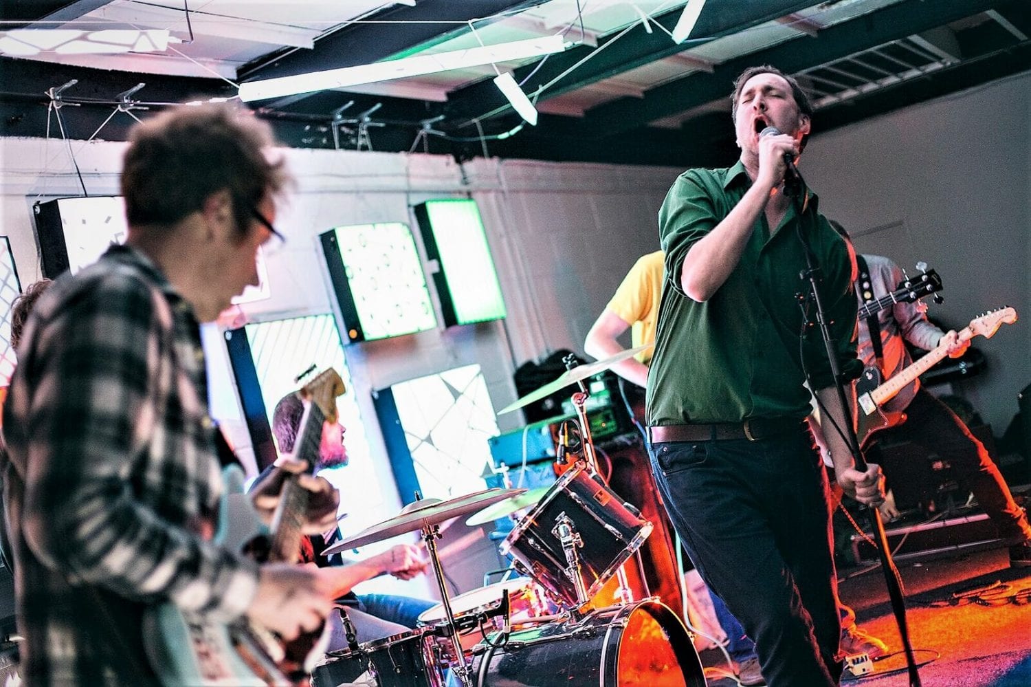 In a concession to the alleged Christmas nature of proceedings our hosts announce the raffle winners before the headliners; there’s a special mention for Mr Tinsel to much cheering. It’s been over a year since Hey Colossus played in Birmingham; they’ve marked turning fifteen with a live album rather than any new material, and it’s been long enough for memories of how good they are to fade just a little. They soon remind us, opening with the prowl and lurch of ‘Honest To God’ they move quickly up through the gears. About midway into ‘Back In The Room’ they fully take flight, a massive, shaking whirl of sound that surrounds and lifts you rather than simply flattens you with volume. Hey Colossus have built their own remarkable sound from familiar elements while keeping worn out genre-markers at arms length. They’re sort of psych, doom, noise, punk, kraut without really being any of them, only traces remain. They’ve also suffered a bout of new guitarists this year, losing the Henry Blacker brothers to the West Country, hopefully not to a gruesome farming incident. New boys Will (Pohl) and Chris (Grey Hairs) huddle together stage right; they’re doing fine. How they still achieve this devastating interlocking of three guitars now the band is spread even further around the country is amazing; it occurs to me Bob might be employing some kind of mind control. Of course, it helps that they’re powered by a fierce rhythm section making them the most irresistibly danceable noise rock band I can think of, drawing out the glorious motorik groove at the end of ‘Black and Gold’ as the crowd leap joyously around. There’s some new stuff in there tonight, including a focussed and melodic feedback drone which lasts for three? five? how many minutes is this? before dropping directly back into the song. All too soon they roar to a close with a thundering, mighty version of ‘Hey, Dead Eyes, Up!’ leaving me grinning and astonished. It might well be the best gig I’ve seen all year, and I saw Workin’ Man Noise Unit last month. To still be one of our most vital and thrilling bands fifteen years in is quite an achievement. Long may they continue.
