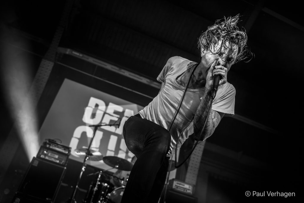 There were simply way too many fantastic sets to mention in lots of detail here, but without making this look like a tick box exercise, I saw most of the following sets, or at least parts of these sets: Birds In Row played their superb album Gris Klein in full, which was a set high on my want list, though sadly clashed with the start of Fluisteraars; Wiegedood are one of my favourite black metal band, but this time they performed a live soundtrack to the Japanese horror movie “A Page Of Madness”, which I really tried to like, but it didn’t do much for me, perhaps mostly due to the lack of the music being actually synchronised to whatever was happening in the movie; Ukrainians White Ward finally successfully managed to travel outside of Ukraine after not having been able to do so last year, and they played a superb set on the first day of the festival, sadly without their saxophone player present, which they solved by using saxophone backing tracks; mysterious death/black metal outfit Thantifaxath played a devastating set, that was perhaps quite challenging for some due to the experimental nature of their extreme metal music using various time signatures and dissonant tunings. It was great to see they had theremin player Jon Liedtke in their line-up for the performance, who was at Roadburn as part of the Inter Arma crew; Fuck Money was one of this year’s hype bands, having heard a lot about them in the lead up to the festival start, and they did not disappoint with their unique brand of “space punk”, showing great musical skills especially by the drummer Alton Jenkins; this was followed by Deaf Club, with charismatic frontman Justin Pearson putting on a fantastic show, delivering a short set full of energy and power.