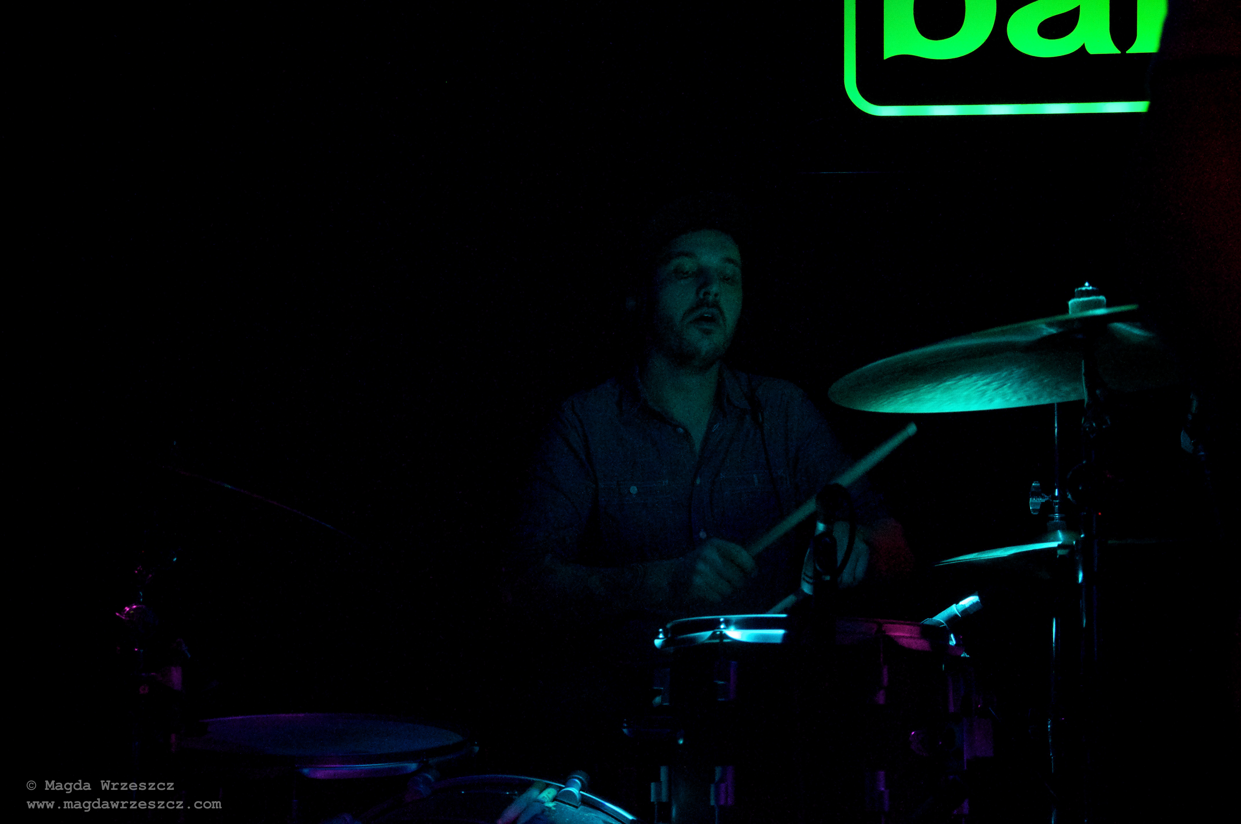 Amusingly the majority of the heavy RIFF sections throughout the set were accompanied by frantic strobes which mixed with the bright neon green venue sign made for a neat psychedelic side effect!